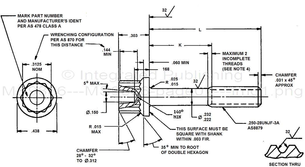BOLT, MACHINE - DOUBLE HEXAGON EXTENDED WASHER HEAD, AMS 5616, .250-2B UNJF-3A